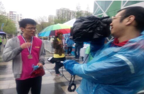 ? ? ? ? 第一個跑到終點的海利爾伙伴接收青島電視臺記者的采訪: